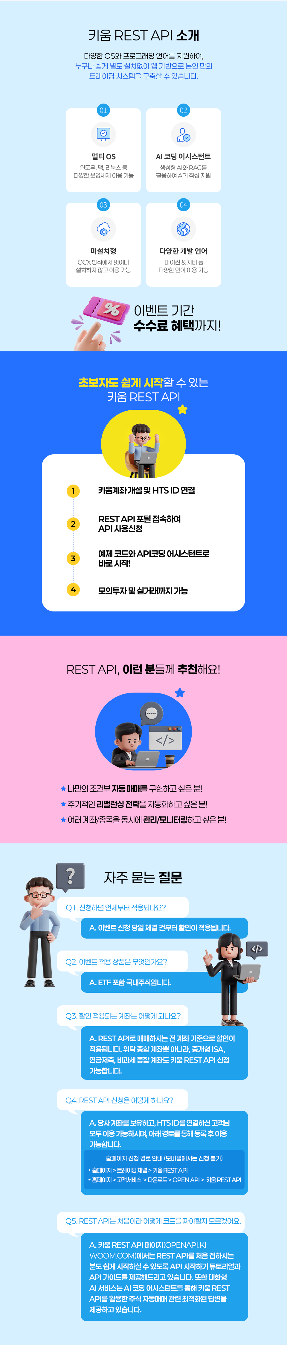 A4. REST API로 매매하시는 전 계좌 기준으로 할인이 적용됩니다.